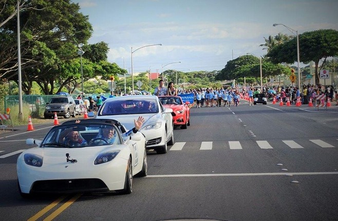 ハワイマウイ島で行われるお祭り「マウイ・カウンティ・フェア」(9月24日~27日)において、弊社代表取締役の田嶋伸博はマウイのアラカワ群長と共に電気自動車でパレードに参加しました。